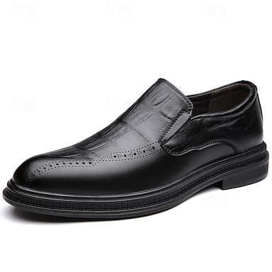 Chaussures habillées noires pour homme en cuir de vachette véritable à motif crocodile – Chaussures habillées élégantes pour les affaires, les mariages et les événements spéciaux
