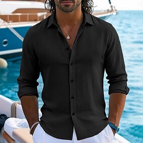 Homme Chemise Chemise en lin Chemise Décontractée Chemise Boutonnée Chemise en coton Uni Vacances Hawaïen Noir Blanche Jaune bleu marine manche longue Revers Printemps Automne Vêtement Tenue