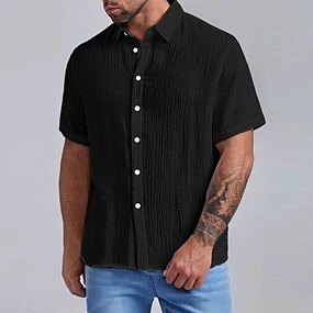 Homme Chemise Chemise d'été Tenue de plage Chemise Décontractée Chemise Boutonnée Couleur Unie Occasionnel Vacances Bleu Noir Blanche Vin Manche Courte Col Rabattu Été Printemps Vêtement Tenue