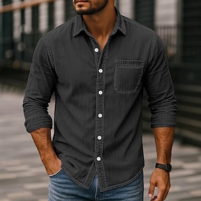Homme Chemise Chemise gaufrée Chemise Décontractée Chemise vintage Chemise Boutonnée Noir bleu marine Vert Gris manche longue Texturé Revers Occasionnel Quotidien Bloc de Couleur Vêtement Tenue Mode