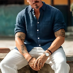 Homme Chemise Chemise en lin Chemise d'été Tenue de plage Chemise Boutonnée Uni Quotidien Vacances Bleu Noir Blanche Rose Claire manche longue Col Rabattu Printemps & Été Été Vêtement Tenue Pur