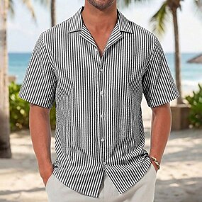 Homme Chemise Chemise Décontractée Chemise en velours côtelé Chemise Boutonnée Chemise en crépon Noir Rose Claire Vert Bleu clair Manche Courte Rayé Col Camp Occasionnel Quotidien Vêtement Tenue