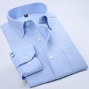 Homme Chemise Chemise boutonnée Chemise Oxford Résistant aux plis Plein Mariage Travail Bleu Ciel Blanche Bleu de minuit manche longue Col Eté Printemps Vêtement Tenue