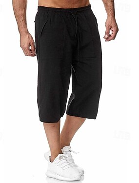 Homme Shorts Shorts en Lin Shorts d'été Shorts de plage Avec Poches Cordon de serrage Taille Élastique Uni Confort Respirant Longueur Genou Occasionnel Quotidien Fête Vacances Style Classique Noir