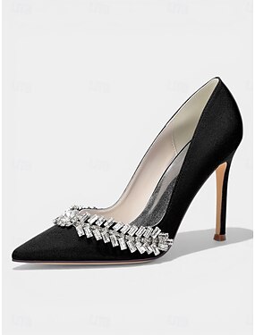 Escarpins à bout pointu en satin violet pour femme, ornés de strass, parfaits pour un cocktail ou un mariage. &événements en soirée