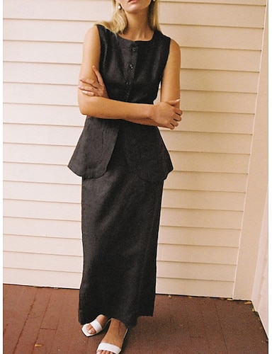 Femmes Ensembles deux pièces Jupe Ensembles Faux coton lin Sans manches Col roulé Col carré Uni Élégant Mode Streetwear Occasionnel Quotidien Extérieur Noir Blanche Beige Été Coupe régulière