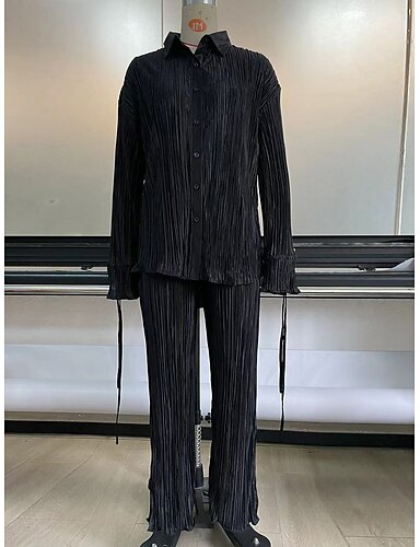 Femmes Ensembles de Pantalons Haut boléro manche longue Col de chemise Uni Froncé Cuisse fendue Élégant Mode Streetwear Occasionnel Quotidien Extérieur Bleu Noir Blanche Été Coupe régulière