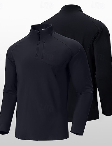 Homme Couleur Unie Chemise d'entraînement Haut de course Printemps Automne Quart de zip manche longue UPF 50 Séchage Rapide Léger Évacuation de l'Humidité Pêche Randonnée Course Gris foncé Noir