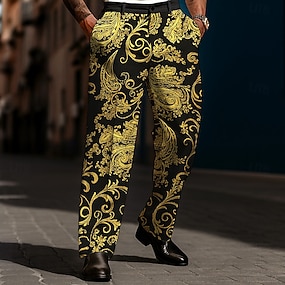 Homme Paisley Imprimé Floral Ethnique Dress Pants works Pantalons Pantalons de Costume Taille Moyenne Vintage Rétro Occasionnel Fête Pantalon habillé coupe décontractée à devant plat avec poches