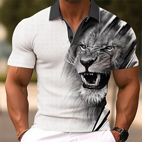 Homme Lion Impressions Graphiques Croix Chemises Polo Gaufre Polo Polo à revers Polos à Boutons Chemise de golf Manche Courte Chemise Col Rabattu Extérieur Rue Jaune clair Noir Jaune Rouge Bleu