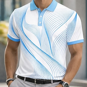 Homme Abstrait Ligne Polo Manche Courte Polos Chemises à Col Vêtement décontracté de travaile Extérieur Athleisure Tenue quotidienne Impression 3D Été Bleu