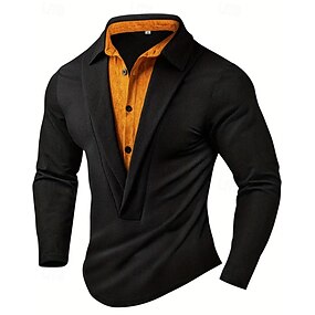 Homme Bloc de Couleur Chemises Polo Gaufre manche longue Polos Chemises à Col Vêtement décontracté de travaile Affaires Tenue de travail Tenue quotidienne Boutons Printemps Automne Hiver Noir Jaune
