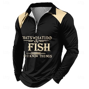 Haut graphique de pêche à manches longues zippé à quart pour hommes - C'EST CE QUE JE FAIS ET JE PÊCHE JE CONNAIS DES CHOSES