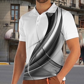 Homme Polo Chemise de golf Club Col cubain Revers Manche Courte Occasionnel Vagues Nouveauté Boutons Devant Printemps & Été Coupe régulière Argent Noir Dorée Polo