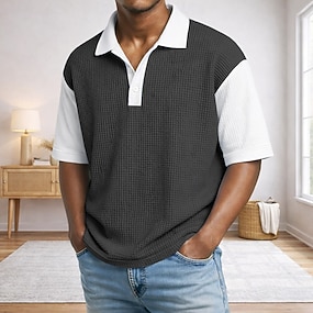 Homme Chemises Polo Gaufre Chemise de golf Occasionnel Col Rabattu Manche Courte Mode Confortable Couleur Unie Bloc de Couleur Printemps & Été Été Printemps Coupe régulière Bleu Noir Vert Kaki