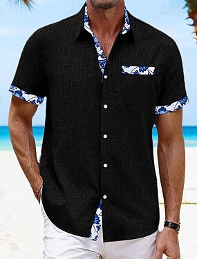 Homme Chemise en lin Chemise Aloha minimaliste Chemise d'été Chemise Décontractée Chemise Boutonnée Cocotier Occasionnel Plage Noir Blanche Rose Claire Bleu Ciel Manche Courte Revers Été Vêtement