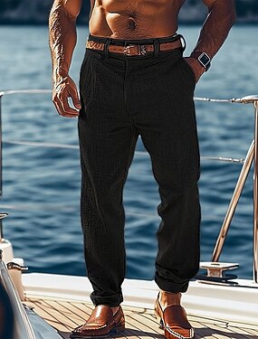 Pour des hommes Coton Lin Dress Pants works Pantalon décontracté Quotidien Bureau Neutre Mode Occasionnel Noir Blanche Marine foncé Couleur Unie Coupe sur mesure Long Non Elastique