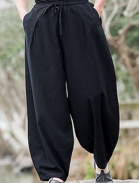 Homme Pantalon en lin Pantalon pantalon été Culotte Bouffante Pantalon baggy Poche Taille elastique Plein Respirable Casual du quotidien Vêtement de rue Style Ethnique Noir bleu marine Non Elastique