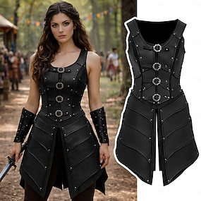 Médiéval Renaissance Robe Armure Veste Guerrier Valkyrie Barbare Déguisement Femmes Viking Fantaisie Halloween Carnaval Performance LARP Foire de la Renaissance Adulte Robe