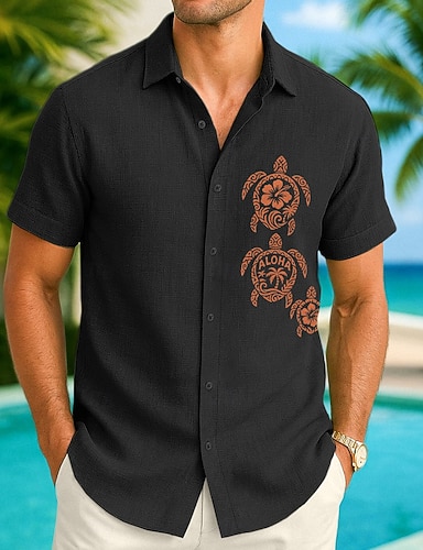 Homme Chemise Décontractée Chemise en coton et lin Chemise Boutonnée Motif Vacances Rue Noir Blanche Rose Claire Bleu Ciel manche longue Revers Toutes saisons Vêtement Tenue Boutons
