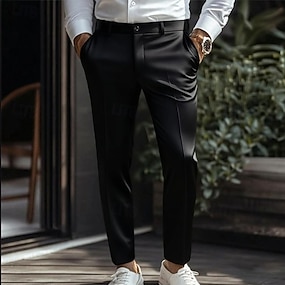 Homme Pantalons Dress Pants works Comme de la soie Pantalon en satin Pantalons de Costume Avec Poches Uni Respirant Longueur cheville Mariage Soirée Affaires Mode Streetwear Mince Argent Noir Non