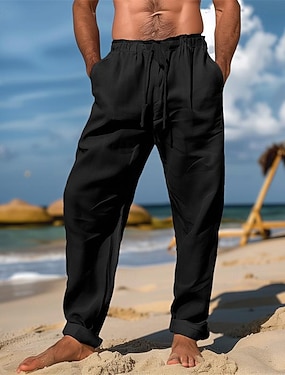 Homme Pantalons en Lin Pantalon d'été Pantalons de Plage Cordon de serrage Avec Poches Uni Confortable Respirant Longueur complète Quotidien Maison Extérieur Vacances Simple Noir Blanche Non Elastique
