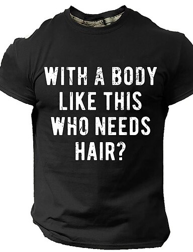 T-shirt à manches courtes pour homme Drôle 'Avec un corps comme ça qui a besoin de cheveux ?' T-shirt graphique haut humoristique