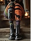 Femmes Leggings Vacances ancien Mode Longueur cheville Taille haute Graphique Crâne Potiron Impression Doux Respirant Élastique Formel Extérieur Vacances Dentelle brun clair Orange Vert Kaki