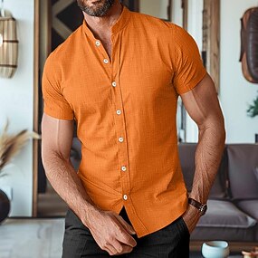 Homme Chemise Chemise en lin Chemise d'été Tenue de plage Chemise à col officier Chemise Boutonnée Uni Vacances Occasionnel Noir Blanche Bleu Orange Manche Courte Band Collar Été Vêtement Tenue