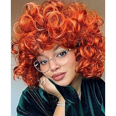 perruques courtes orange pour femmes blanches, perruque marron avec frange, perruques courtes bouclées coupe lutin, charmantes perruques synthétiques ondulées sans colle en couches pour vieille dame