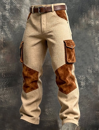 Homme Gauffré Pantalons Cargo Pantalons Pantalon en velours côtelé Pantalon décontracté Patchwork Avec Poches Taille Élastique Uni Confort Doux Longueur complète Extérieur Quotidien Sortir Vacances