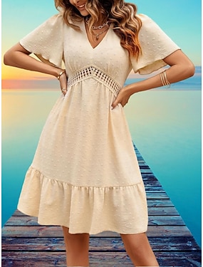 Femmes Robe Longueur Genou Robe de Plage Robe en Dentelle Robe Décontractée Élégant Mode Moderne Extérieur Plage Vacances Coupe régulière Uni Manche Courte Col en V Bordeaux Vert Claire Abricot Ét