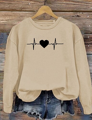 Femmes Sweatshirt Pull Cœur Uni Élégant Chaud Mode manche longue Col ras du cou Hauts Réguliers Travail Rue Tenue Quotidienne Patchwork Imprimé Noir Blanche Jaune Rose Claire Marron Printemps Automne
