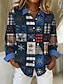 Noël Femmes Chemise Chemisier Graphique Géométrique Plaid ancien Tropical Élégant manche longue Col de chemise Hauts Réguliers Quotidien Patchwork Boutons Imprimé Bleu Bleu Poudré Été Printemps