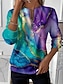 Noël Femmes T-shirt Chemisier Noël laid Basique manche longue Manche flottante Col en V Hauts Réguliers Quotidien Sports Patchwork Imprimé Noir Blanche Rouge Vert foncé Vert Printemps Automne Hiver