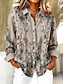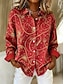 Femmes Chemise Chemisier Fleuri Graphique ancien Occasionnel manche longue Col de chemise Hauts Réguliers Quotidien Patchwork Boutons Imprimé Rouge Kaki Été Printemps Automne Hiver