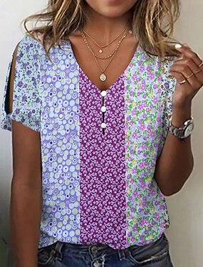 Femmes T-shirt Imprimé Fleuri Mode Occasionnel Boho Manche Courte Col en V Hauts Réguliers Quotidien Week-end Bleu Blanche Bleu Roi Violet Vert Été Printemps