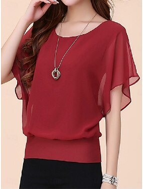 Femmes Chemise T-shirt A Volants Patchwork Uni Élégant Classique Occasionnel Manche Courte Col en V Hauts Réguliers Quotidien Sortir Week-end Noir bleu marine Violet Été Printemps