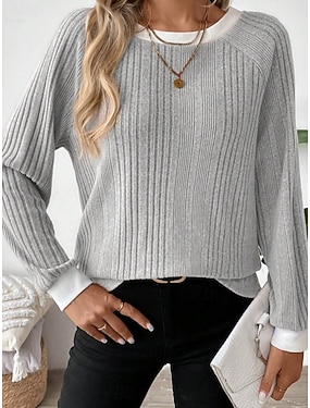 Femmes Chemisier Patchwork Maille Couleur Unie Élégant Occasionnel manche longue Col ras du cou Hauts Réguliers Quotidien Bleu Noir et gris Noir Rose Claire Rouge Printemps Automne Hiver