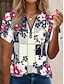 Femmes T-shirt Imprimé Fleuri Graphique Plantes ancien Élégant Occasionnel Manche Courte Col en V Hauts Réguliers Quotidien Week-end Bleu Beige clair Noir Rouge Marron clair Été Printemps