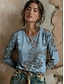 Femmes T-shirt Imprimé Fleuri Graphique Plantes Élégant Bohème ancien manche longue Col en V Hauts Réguliers Quotidien Sortir Week-end Bleu Jaune Rose Claire Violet Vert Printemps Automne