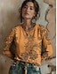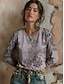 Blouse femme tunique à lacets épissures col en V à manches longues graphique floral plantes vintage décontractée col rond hauts impression quotidienne sortie week-end impression en dentelle blanche