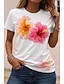 Femmes T-shirt Imprimé Fleuri Graphique Plantes Élégant Classique Occasionnel Manche Courte Col ras du cou Col rond Hauts Réguliers Quotidien blanc / bleu Noir Blanche Été Printemps