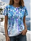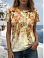 Femmes T-shirt Imprimé Graphique Plantes Élégant Classique Occasionnel Manche Courte Col ras du cou Hauts Réguliers Quotidien Bleu Jaune Violet Vert Été Printemps