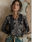 T-shirt Femme à manches longues col en V tunique graphique plantes mandala élégante bohème vintage tops réguliers quotidiens sortie week-end impression noire printemps automne hiver préautomne