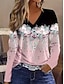 Femmes T-shirt Imprimé Fleuri Graphique Plantes ancien Mode Élégant manche longue Col en V Hauts Réguliers Quotidien Rose Claire Printemps Automne