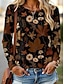 Femmes T-shirt Imprimé Fleuri Graphique Plantes Mode Élégant Classique manche longue Col ras du cou Col rond Hauts Réguliers Quotidien Week-end Marron Été Printemps Automne