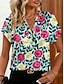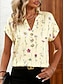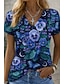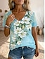 Femmes T-shirt Imprimé Fleuri Graphique Plantes ancien Élégant Classique Manche Courte Col en V Encolure en V Hauts Réguliers Quotidien Sortir Week-end Bleu Jaune Été Printemps