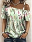 Femmes T-shirt Imprimé Asymétrique Fleuri Graphique Plantes Élégant Classique Occasionnel Manche Courte Épaules Dénudées Col asymétrique Hauts Réguliers Quotidien Sortir Week-end Vert Été Printemps