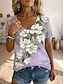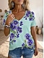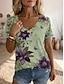 Femmes T-shirt Imprimé Fleuri Graphique Plantes Bohème ancien Élégant Manche Courte Col en V Hauts Longs Quotidien Bleu Rose Claire Violet Vert Kaki Été Printemps